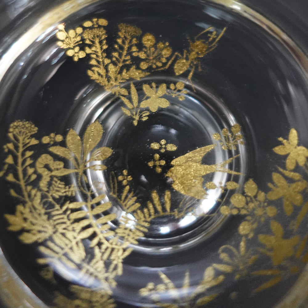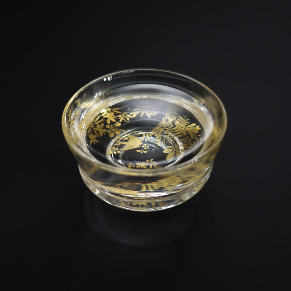 熱で縮緬上になった金箔が乱反射を起こし、液体を注ぐと