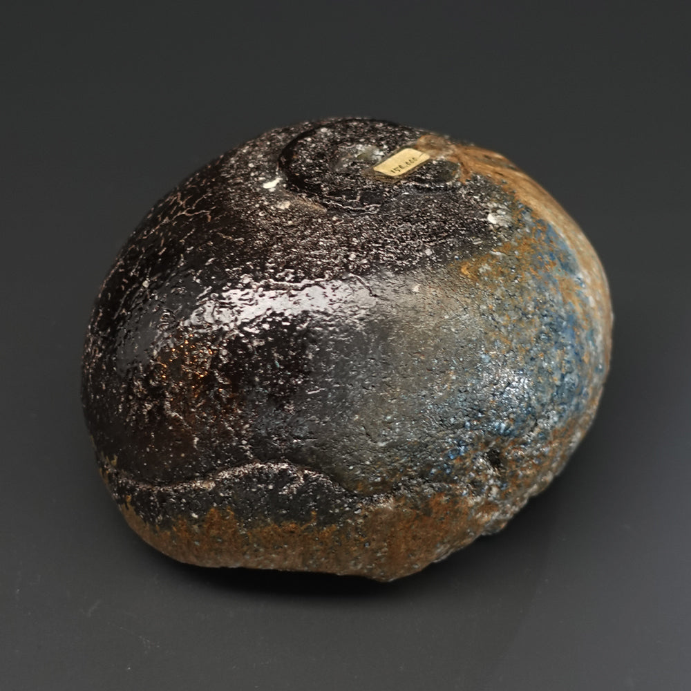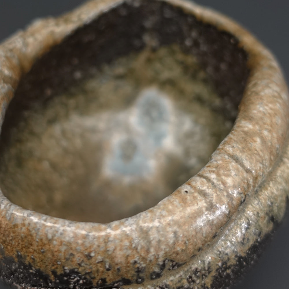 青く発色した所や、灰が被り溶けて流れた景色などが