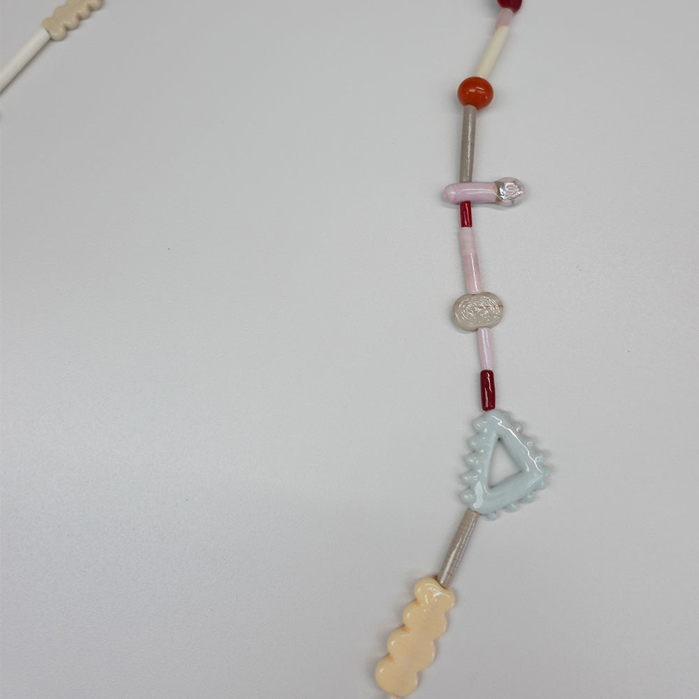 不透明なガラスを用いたパーツが多い1点。ラメを入れたガラスの部分もあって