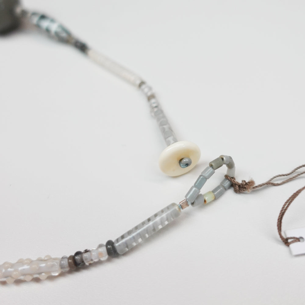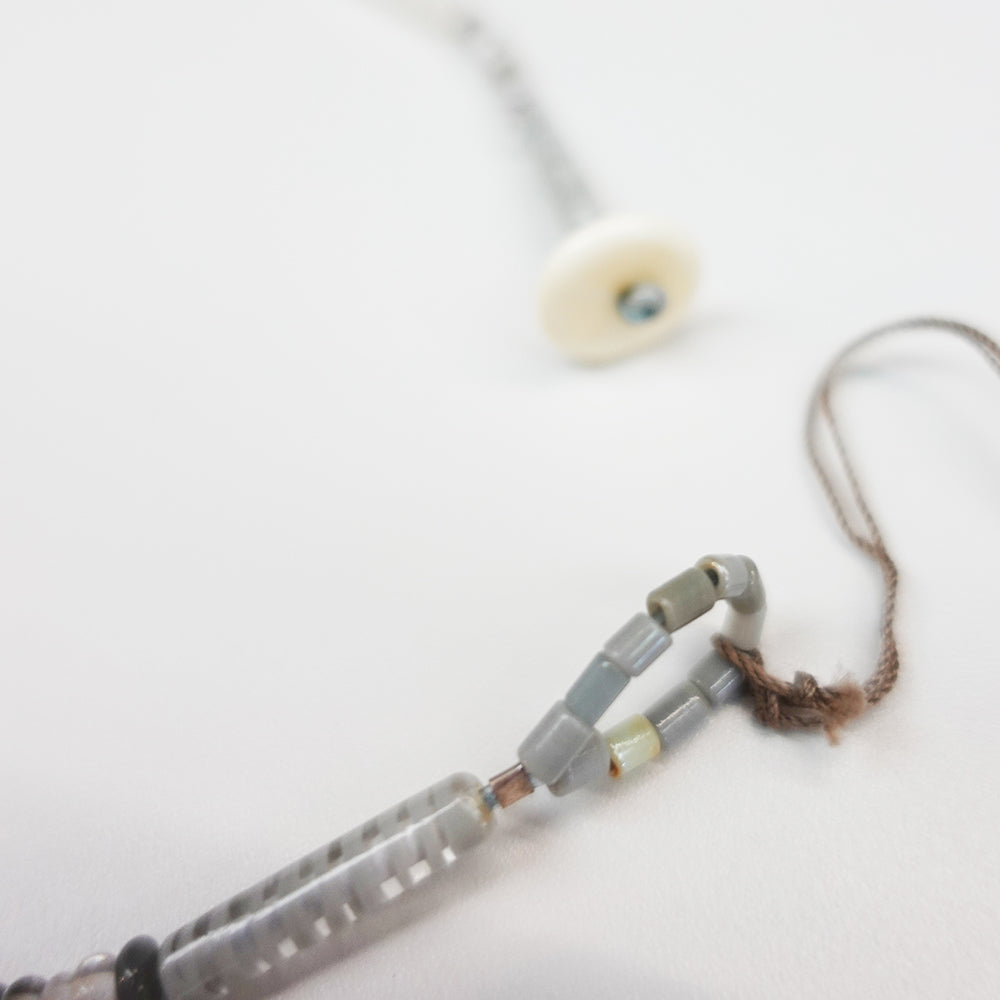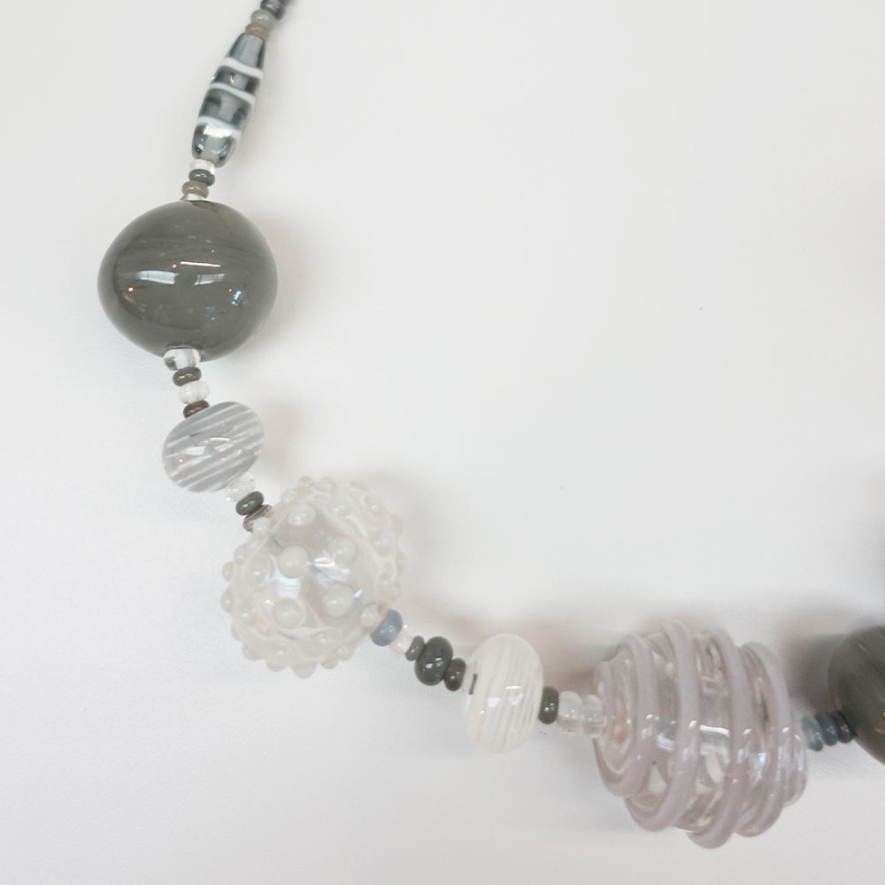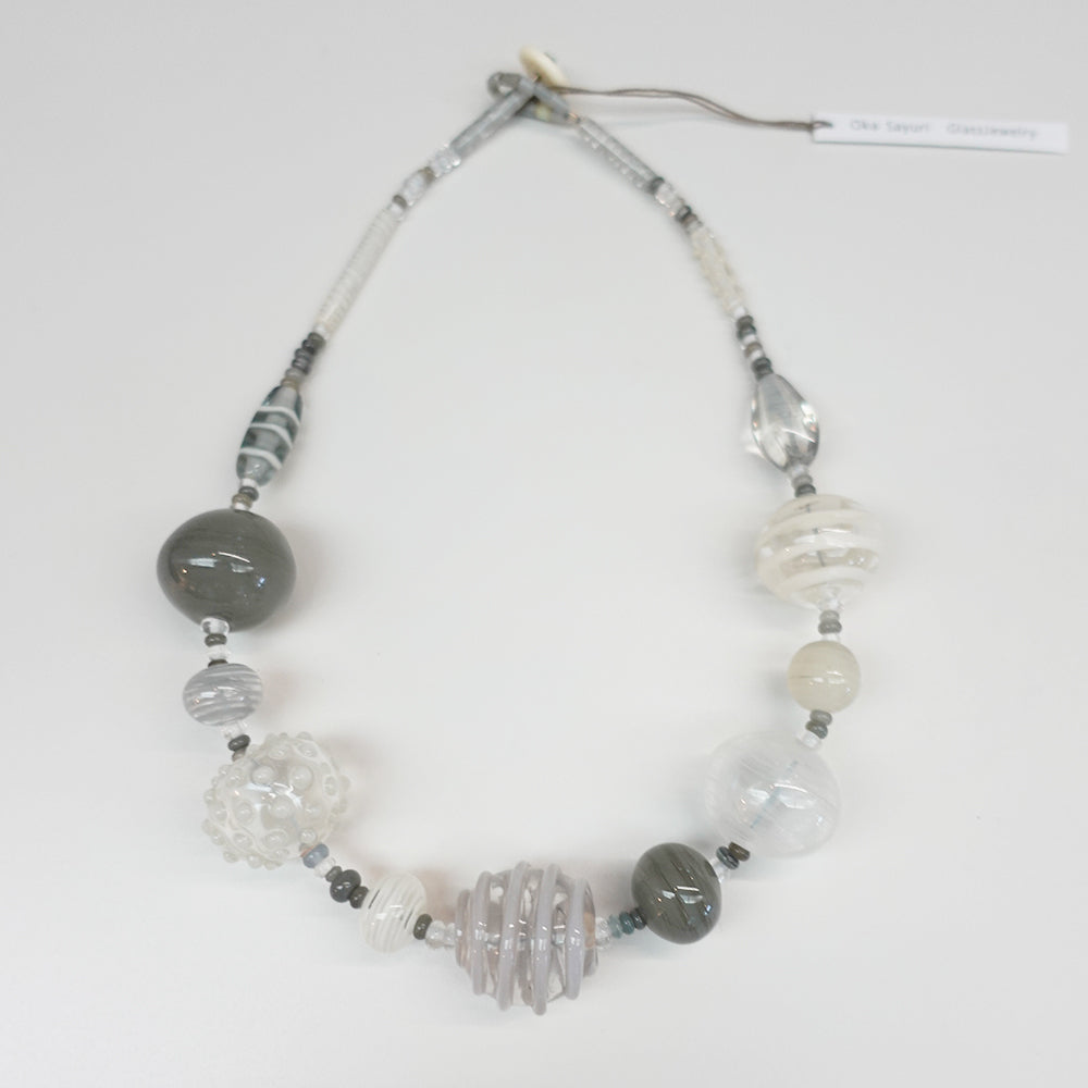 大き目なグレーのガラスのパーツを用いた1点。パーツは中空なのでボリュームの割には